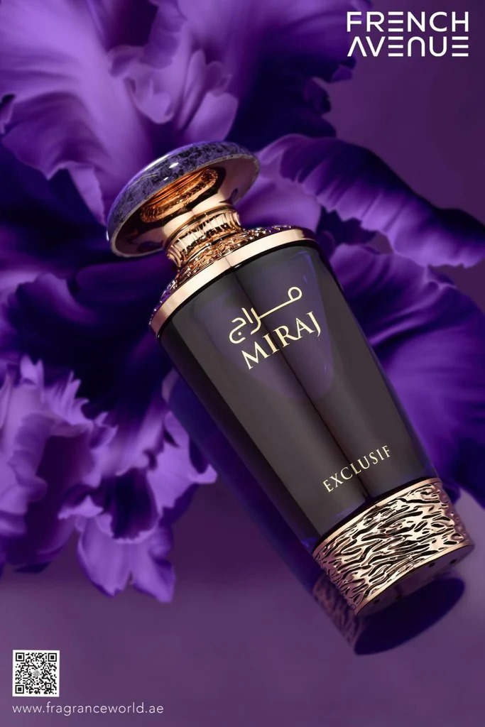הבושם Miraj Exclusif של חברת French Avenue הוא ניחוח פרחוני לנשים ולגברים. הניחוח חדש. Miraj Exclusif הושק בשנת 2024. התווים העליונים הם קפה והל. תו האמצע הוא יסמין סמבק. תווי הבסיס הם וניל, אוד וקטורת.