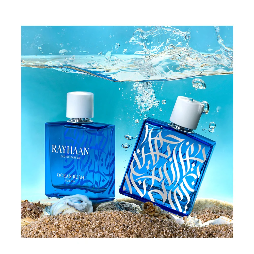 הבושם Ocean Rush של חברת Rayhaan הוא ניחוח ארומטי מימי לגברים. הניחוח חדש. Ocean Rush הושק בשנת 2024. התווים העליונים הם קסקלון, אקוזון, תפוז ברגמוט ו- מנדרינה; תווי האמצע הם לבנדר, רוזמרין ו- ברוש; תווי הבסיס הם ענבר, מושק ו- פצ’ולי.